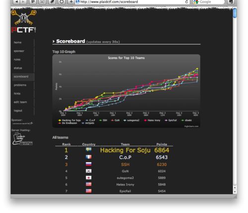 48時間の格闘を終了し、最終的に5位でした。今回はスタート出遅れ気味で、全体的に後追いの展開。問題もイマイチフィットせず苦労しましたが、最後3時間ほど前に首位になりました。しかし、それ以降得点が伸ばせませんでした。DEFCONのCTF予選と同様に、最後…