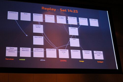 ということでこちらの話の続き。 公式のルールはこのへんで http://conference.hitb.org/hitbsecconf2013kul/HITB2013KUL-CTF-Team-Handbook.pdf 昨年との違いは、夜通しでなくなったくらいで、基本は例年どおり。 チーム(国)のHPを増加させるサービス、デー…